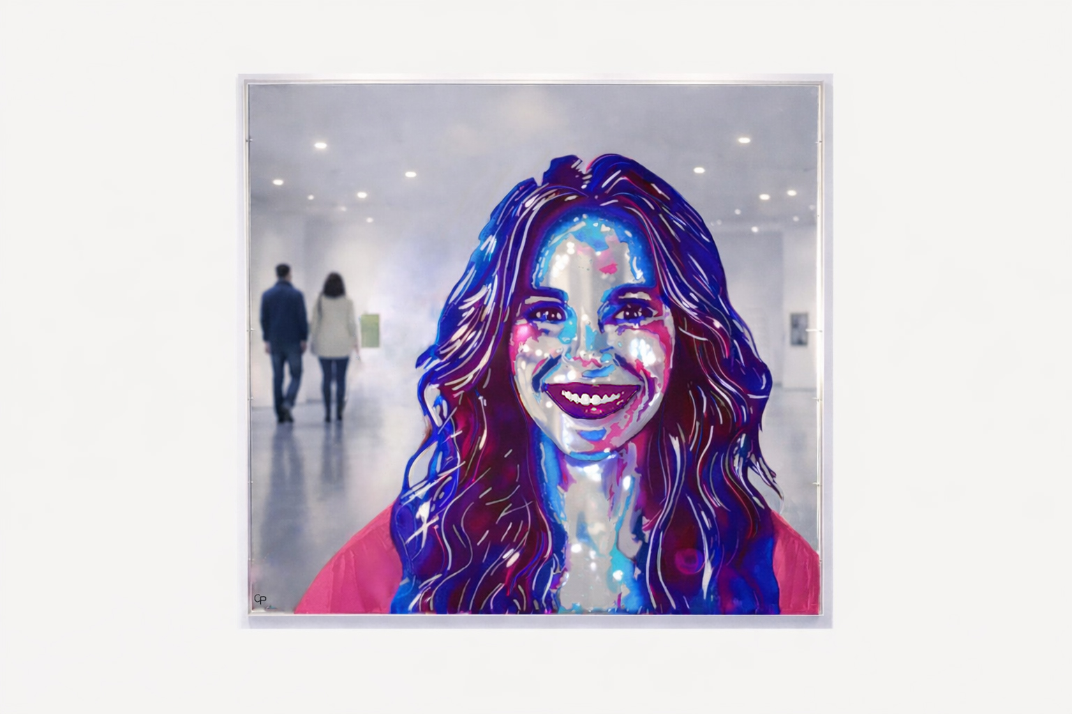 “Reflection of Energy, “I am just an ordinary person who has an extraordinary job”, Julia Roberts is a unique piece of the Iconic Collection. It is made from the materials, highly reflective sustainable material, acrylic paint layers, enriched with tailor-made couture. Handmade acrylic frame.